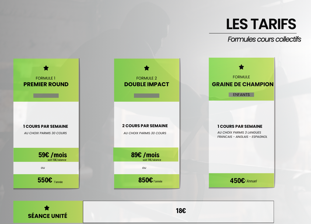 TARIFS À PARTIR DE SEPTEMBRE 2026